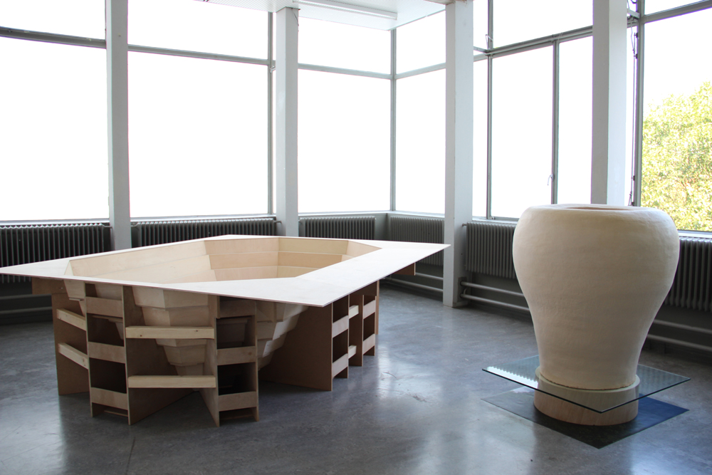 In ceramics the coil building technique is one of the oldest ways to shape clay, working in an upward movement, from the bottom to the top.  When I think of ceramics I mostly think of pots, table ware and vases. The material and its signification, the material as embodiment of a symbolic archetype is something I tried to work and play with.