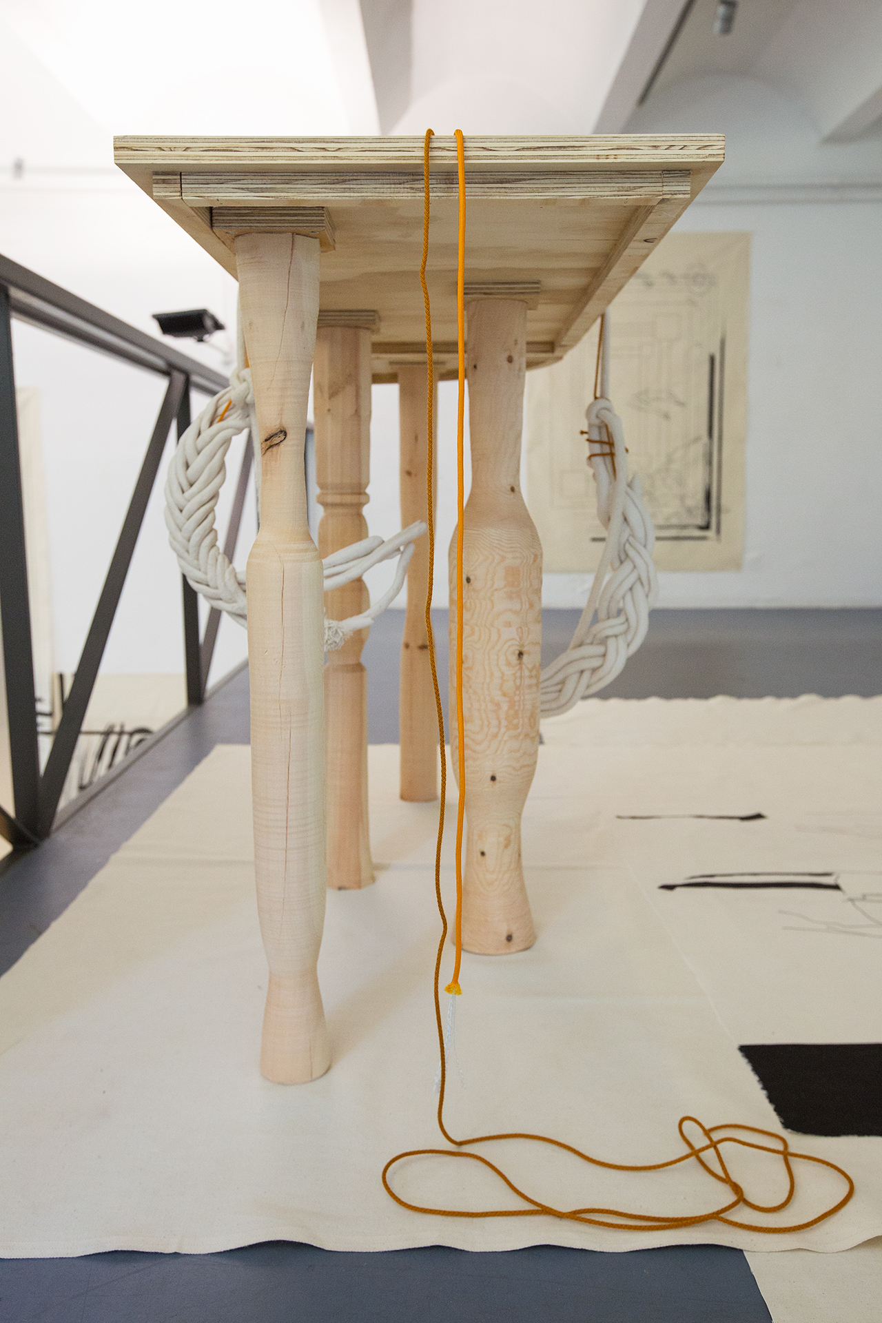 Ceramics, cotton rope, Wood, 42 x 132 x 70 cm.